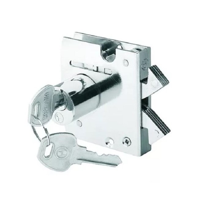 Código do Produto: 14040.0130.05 - Fechadura Blindex V530 cromada para porta de correr com um cilindro redondo.