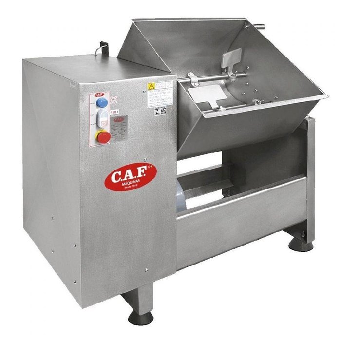 A misturadeira CAF M-60 NR 12 é um equipamento indicado para uso em: pequenas e médias indústrias de embutidos etc.Objetivo: Misturar de maneira homogênea as carnes com temperos e condimentos, proporcionando sabor e aromatização uniforme.Especificações técnicas:
