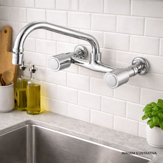 Misturador para Cozinha de Parede 3003 C 40 Domus Meber Metais Cromado