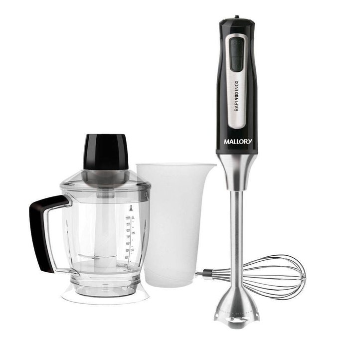 O Mixer BAPI 900 INOX da Mallory é 3 em 1 - Mixer, Processador e Batedor de claras e massas leves além de funcionar com apenas um toque! Prático e potente, possui lâminas e braço em aço inoxidável que possibilitam o preparo de alimentos quentes.