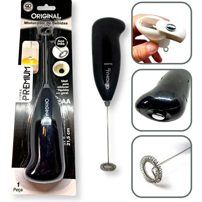 Prático e extremamente durável, o misturador funciona com duas pilhas AA (não inclusas), que podem ser encontradas na grande maioria de mercados ou lojas de eletro-ferragens.