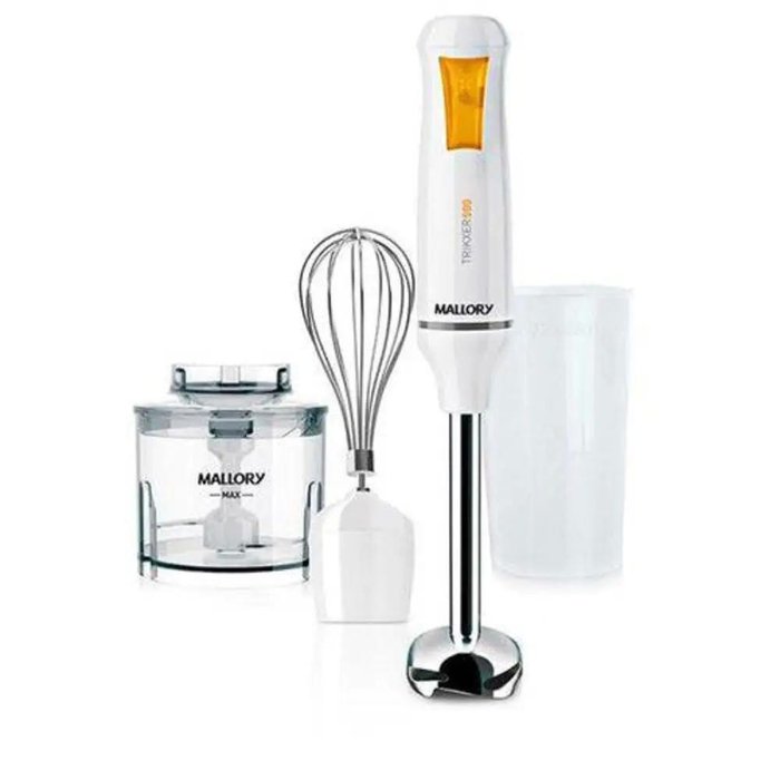 O Trikxer 500 da Mallory é 3 em 1 e funciona com apenas um clique. Versátil, é mixer, processador e batedor de massas leves, trocando apenas o acessório. Prático e superpotente, possui lâminas em aço inoxidável que picam gelo, Mix Up System que melhora a circulação dos alimentos pelas lâminas e braço em aço inox que possibilita o preparo de alimentos quentes. Desmontável e de fácil limpeza. Acompanha um copo ultra resistente. Prepare sucos, vitaminas, shakes, smoothies, molhos e outras diversas receitas