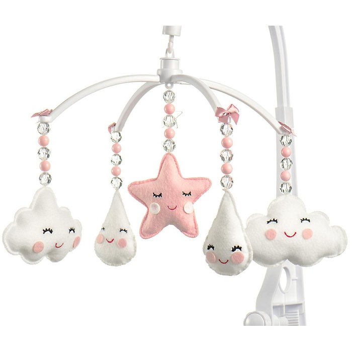 O Móbile para berço musical Chuva de amor Rosê é o acessório ideal para dar o toque final na decoração do quarto do bebê. Possui uma doce melodia para acalmá-lo, tão doce quanto uma canção de ninar da mamãe. Além disso, o móbile é giratório buscando estimular a interação da criança com o objeto.