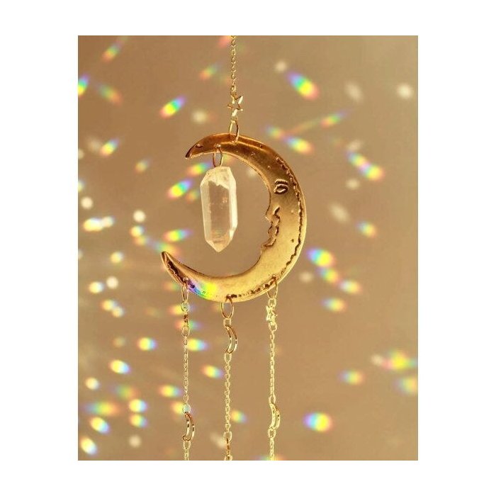 Este modelo traz três Luas intercaladas por esferas de cristal multifacetado e na extremidade uma ponta de cristal sintético.