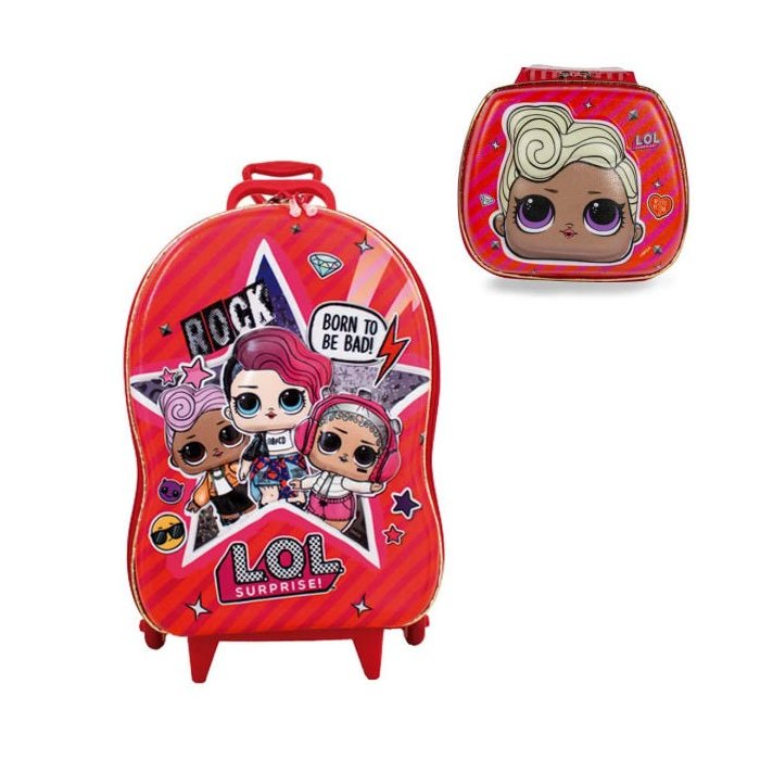 Mochila 3D com Rodinhas e Lancheira Lol MC 2990BM19 Lançamento - Vermelho