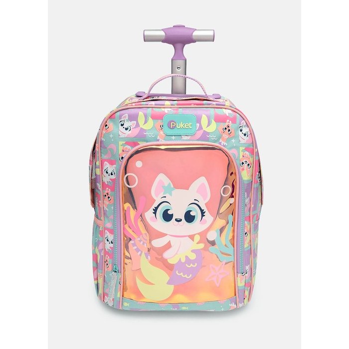 Mochila com Rodinha Pequena Pet Sereia Verde Agua Puket Multicolorido