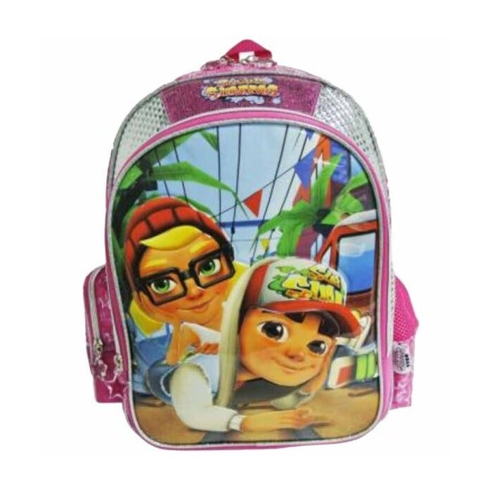 Mochila Subway Surfers- SBM600505 - Importadora Santino, - Produto original e licenciado, - Material: Poliéster, - Cor: Rosa, - Estampa rotativa, - Tamanho : grande, - Bolsos laterais ,um com ziper outro telado, - Bolso frontalestampa personagens em Pvc cristal, - Fechamento com zíper e cursores personalizados, - Alça de mão, - Medida: 40cm x 30cm x 13cm