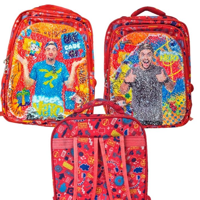 Mochila Duas Estampas Lantejoula Lucas Neto Vermelha