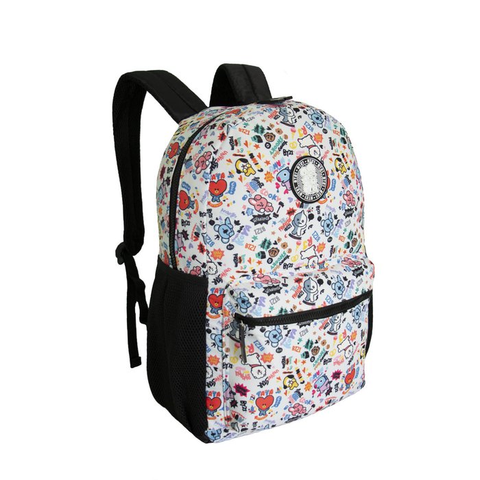 MOCHILA ESCOLAR BTS BT21 KPOP ORIGINAL ESTAMPADA LANÇAMENTO - Preto