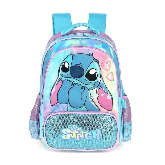 A MOCHILA ESCOLAR STITCH INFANTIL PELUCIADA DISNEY da marca Luxcel é a escolha perfeita para as pequenas que querem levar um pouco da magia da Disney para a escola.