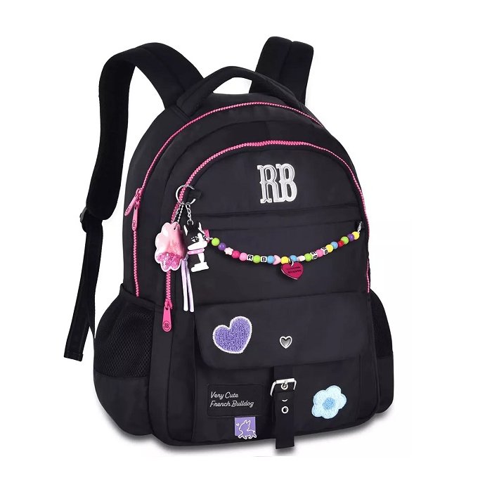 Mochila Escolar de Costas Rebecca Bonbon Juvenil Miçangas Rb24595 Preto