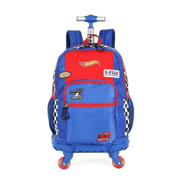 Mochila Escolar de Rodinhas 360 Hot Wheels Azul Luxcel