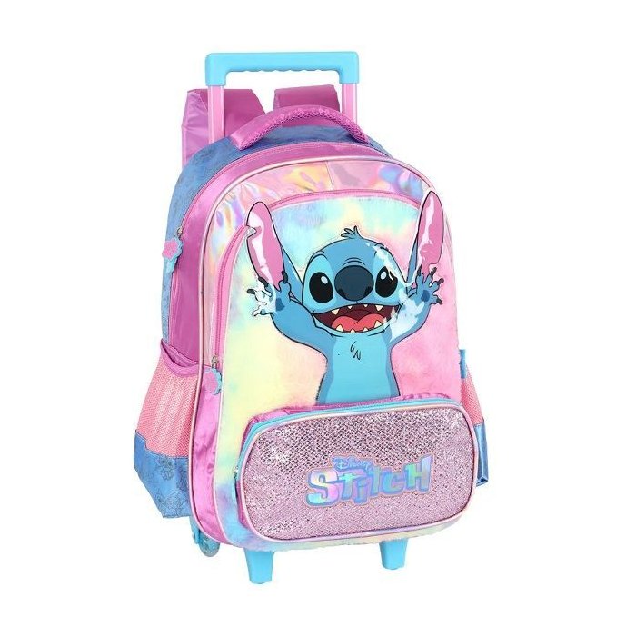 Mochila Escolar Infantil Disney Stitch 2 em 1: utilize como mochila de rodinha ou de costas, adaptando-se a cada momento!