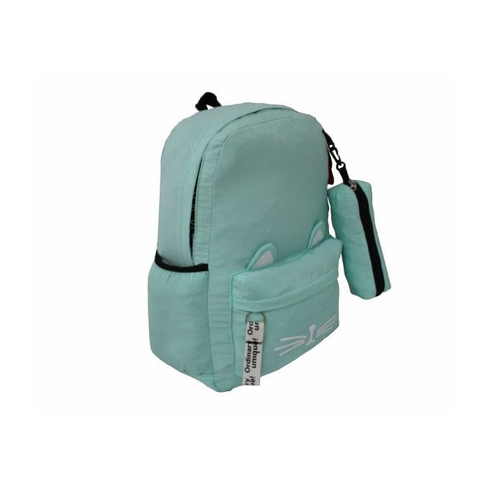 Mochila Escolar Feminina Infantil Juvenil Média Gatinha M831 Verde Água
