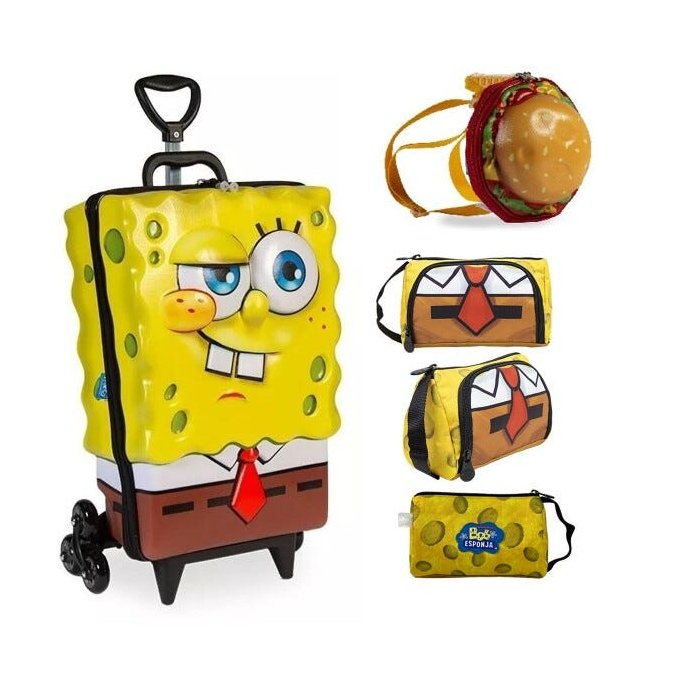 Mochila Escolar De Rodinha Bob Esponja 3D + Lancheira MaxToy