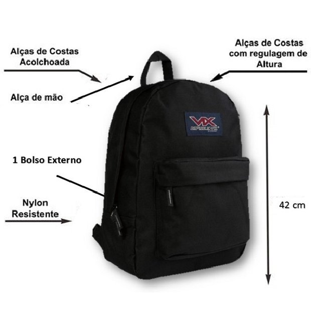 Mochila Escolar Trabalho Viagem Reforçada Faculdade Vix Preta