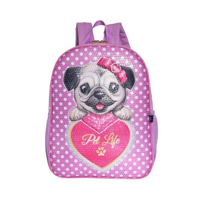 Mochila Infantil Costas Pet Life Cachorrinho Com Lantejoula Pink