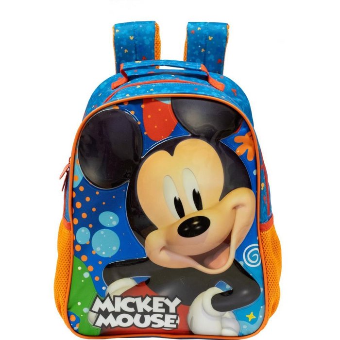 Mochila 16 Mickey R - 10512 - Em tamanho 16", e produzida em poliester resistente e estampado. Painel frontal PVC patch com espuma - Compartimento principal amplo, 2 bolsos laterais em mesh com elastico. Ziper com puxadores personalizados. Alcas acolchoadas regulaveis para maior conforto.