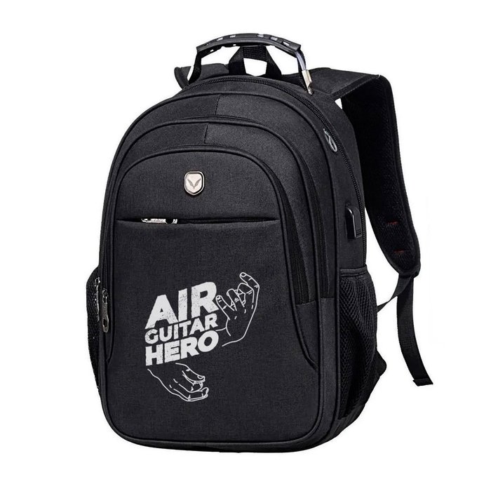 Mochila Notebook Saida Cabo Aux Usb Fone Air Guitar Hero Presente Super Preto