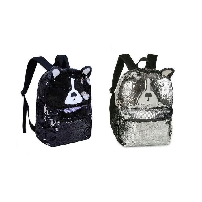 MOCHILA PAETÊ CACHORRO PRETO/PRATA CLIO GIRLS CG2034