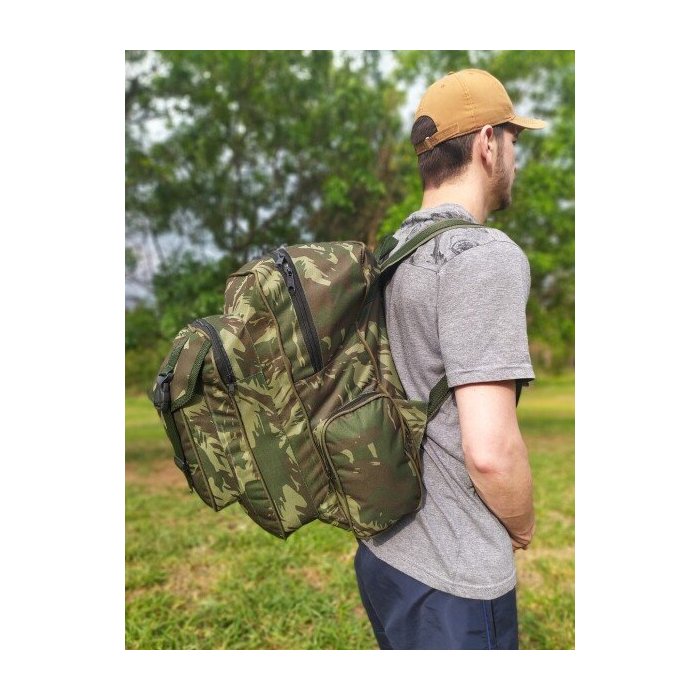 MOCHILA PESCADOR 40L COMPACTA VERDE CAMUFLADA CAMPING VIAGEM