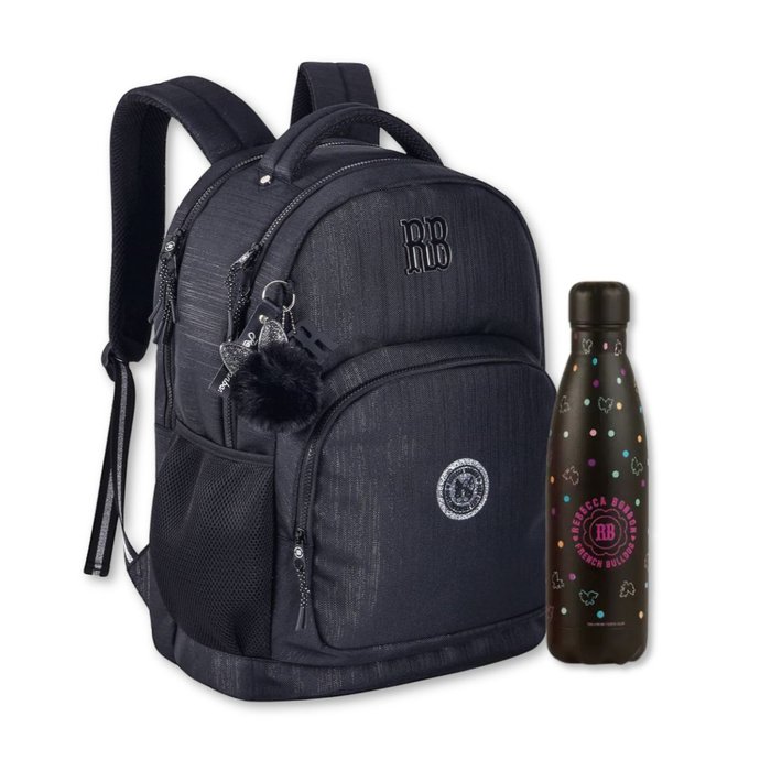Mochila Rebecca Bonbon com Garrafa Térmica Kit Escolar preto