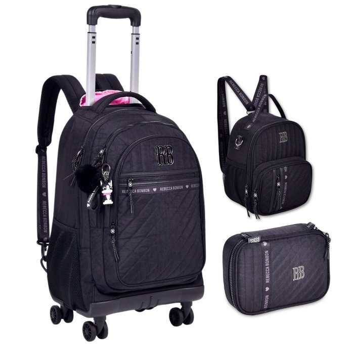 Transforme a rotina escolar em uma verdadeira experiência de estilo e praticidade com o Kit Mochila de Rodinhas Rebecca Bonbon RB24518 + Lancheira RB24523 + Estojo Box RB24525. Se você já é fã da marca Rebecca Bonbon, vai se apaixonar por este kit que une charme e funcionalidade de forma irresistível! Mochila de Rodinhas RB24518