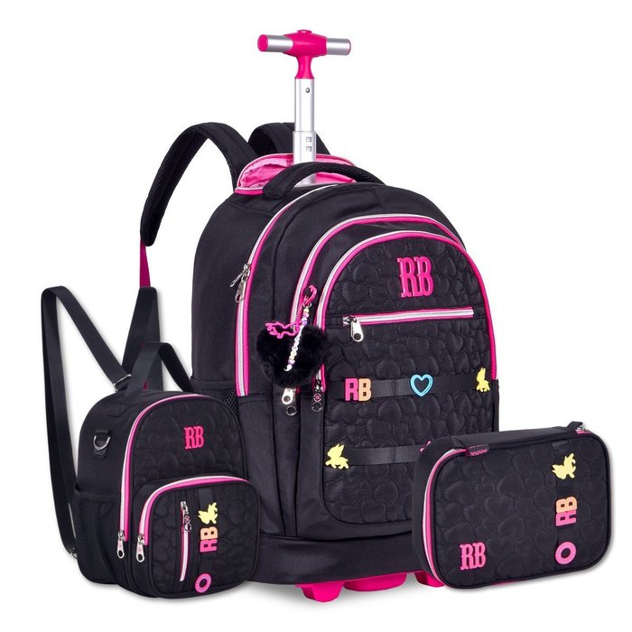 Mochila Rodinha Rebecca Bonbon com Lancheira Térmica e Estojo Preto