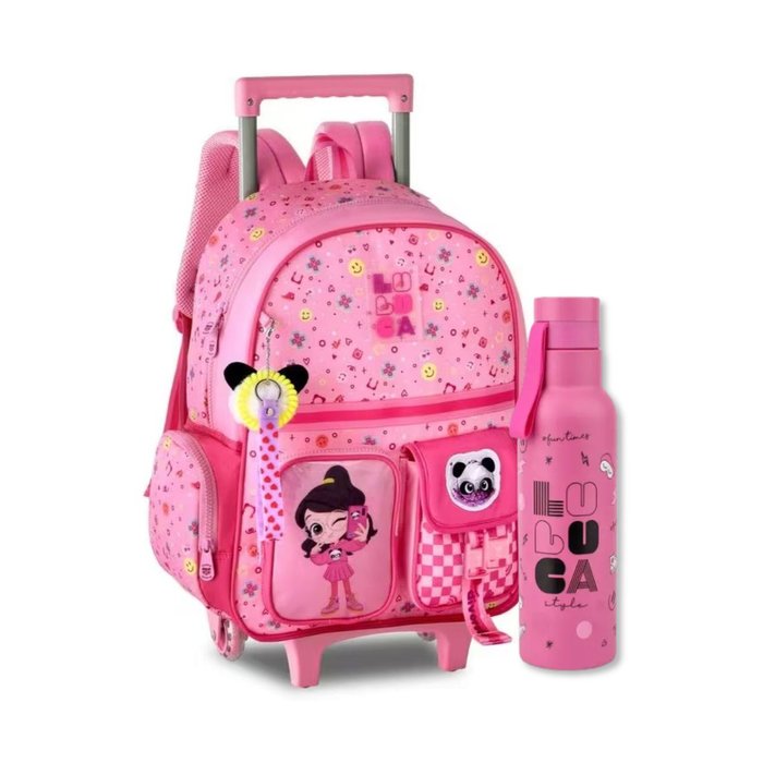 Mochila Rodinhas Escolar Infantil Luluca com Garrafa Térmica