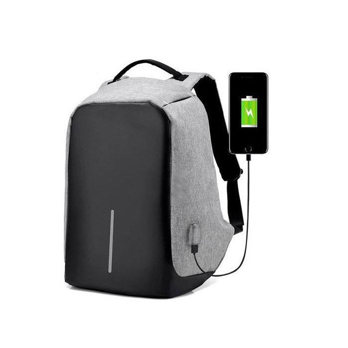 A mochila possui um cabo USB embutido, basta conectar o carregador móvel ao cabo e a conexão USB pode ser carregada. (não inclui fonte de energia/carregador)