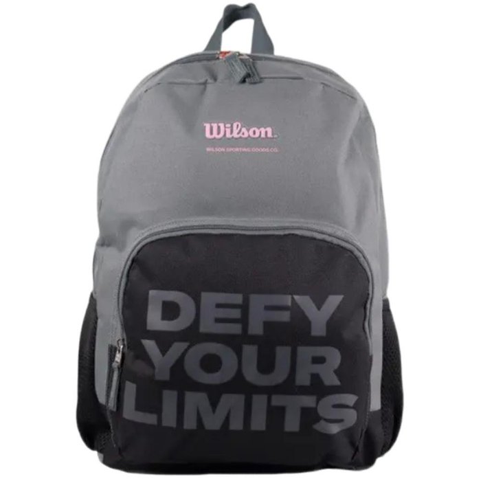Mochila Feminina Casual Wilson Para quem ama bolsa com ótimo espaço, esse é o modelo perfeito para complementar suas produções de trabalho e do dia a dia. Trazendo muita praticidade, estilo e charme em todas ocasiões. DETALHES:-Mochila Feminina.-Alça de mão.-Alça de costas acolchoada e ajustável.-Bolso principal com amplo espaço com divisória com fechamento por zíper duplo.-Um bolso parte frontal com fechamento por zíper.-Dois bolsos nas laterais telado, porta garrafa.-Logo da marca parte frontal emborrachada.-Costuras duplas reforçadas.-Referência: 65011018.-Marca: Wilson. MATERIAL100% poliéster. DIMENSÕES:Altura: 44cm.Largura: 30cm.Profundidade: 15cm.
