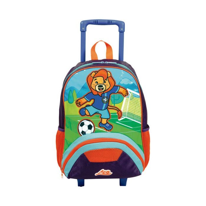 A Mochila de Rodinhas Grande Tini 21X Leo chegou com o Leo preparado para marcar esse gol! Você quer participar desse jogo também? Produzida em Poliéster, um material muito resistente e em formato especial, possui carrinho embutido e alça de mão, o que facilita o transporte. Além disso, tem bolso lateral com elástico e bolso frontal com zíper, perfeito para garantir que pequenos objetos estejam sempre ao seu alcance! Tem também identificador no verso, para você colocar o seu nome.