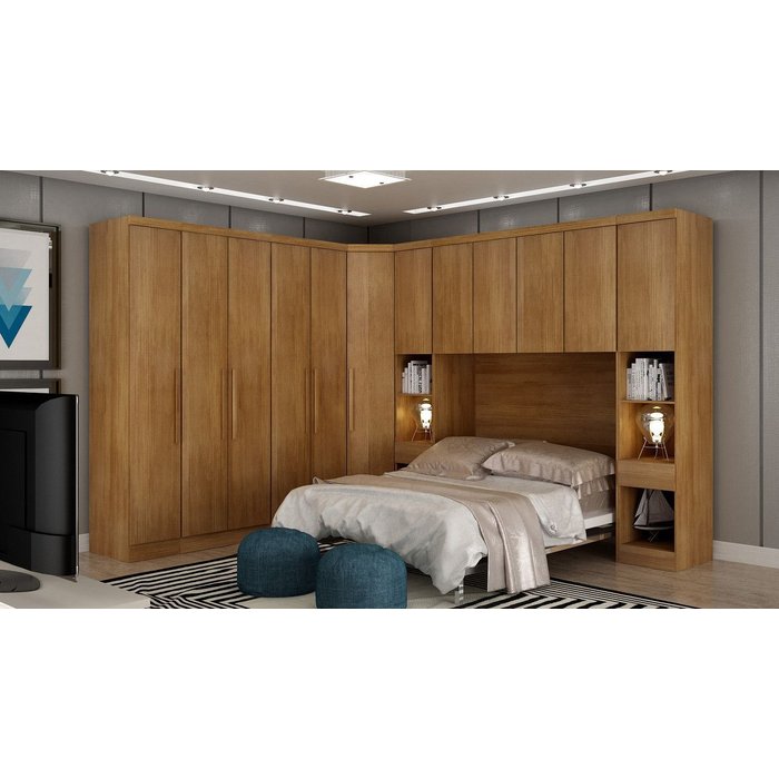 Modulado Casal Completo 6 Portas 6 Gavetas - Rizon - Móveis Novo HorizonteO Modulado Casal Rizon irá mudar o visual do seu quarto, pois ele possui um bom número de compartimentos, além de nichos e várias prateleiras que podem acomodar bolsas, roupas de camas, sapatos e o que mais você precisar para um dia a dia mais prático. Ainda conta com 6 gavetas espaçosas com corrediças telescópicas e 5 cabideiros. Perfeito, não é mesmo? Aproveite!Faz parte do anúncio:1 Módulo 1 Porta2 Módulos 2 Portas 3 Gavetas1 Módulo Canto Oblíquio2 Módulos Mesa de Cabeceira1 Módulo Aéreo CasalObs: Objetos de decoração, cama e colchão não acompanham o produto.Particularidades do Modulado:Características:- 100% MDF- Excelente espaço interno- 15 prateleiras internas- 8 gavetas com corrediças telescópicas- 5 cabideiros de alumínio- Dobradiças de pressão 35mm - Indicado para colchões até 1,38m ou 1,58mDimensão Total:Altura: 2,36 metrosLargura: 2,86x3,36 metrosDimensões Módulo 1 Porta:Altura 2,36 metrosLargura 40,8 centímetrosProfundidade: 56,5 centímetrosDimensões Módulo Canto Oblíquio:Altura 2,36 metrosLargura 82,7 metrosProfundidade: 69,5 centímetrosDimensões Módulo 2 Portas:Altura 2,36 metrosLargura 80,4 centímetrosProfundidade: 56,5 centímetrosDimensões Módulo Mesa de Cabeceira:Altura 2,36 metrosLargura 42,6 centímetrosProfundidade: 56,5 centímetrosDimensões Módulo Aéreo Casal:Altura 2,36 metrosLargura 1,67 metrosProfundidade: 56,5 centímetrosFIQUE ATENTO: Verifique se as medidas disponíveis do seu espaço são compatíveis com as medidas do modulado.Informações Importantes:.- Produtos podem apresentar diferenças de tonalidades entre a foto na tela e o produto real, devido a calibração de cor de tela.- Limpar com flanela ou pano macio. Não utilizar álcool. Não utilizar produtos abrasivos ou corrosivos.- Nós prezamos pela qualidade da entrega em primeiro lugar, trabalhamos com transportadoras altamente selecionadas e os melhores materiais de embalagem.- A montagem é de total responsabilidade do comprador. Antes de comprar, verifique o espaço disponível para a montagem.- Certifique-se de que o produto caiba em elevadores e vãos de escadas, não fazemos içamentos. Quaisquer despesas deste tipo ficam a cargo do cliente- Garantia de 3 meses contra defeitos de fabricação.