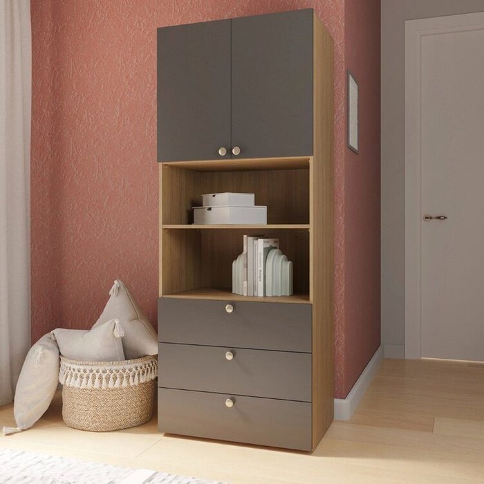 Módulo 70x180 2 Portas 1 Kit Prateleira 3 Gavetas Frame CabeCasa MadeiraOriginals Acácia/Grafite