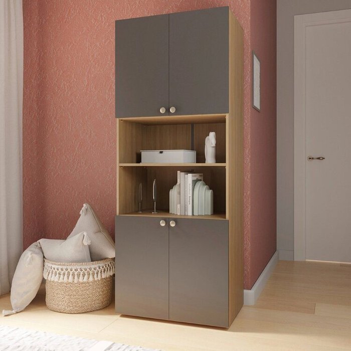 Módulo 70x180 4 Portas 1 Kit Prateleira Frame CabeCasa MadeiraOriginals Acácia/Grafite
