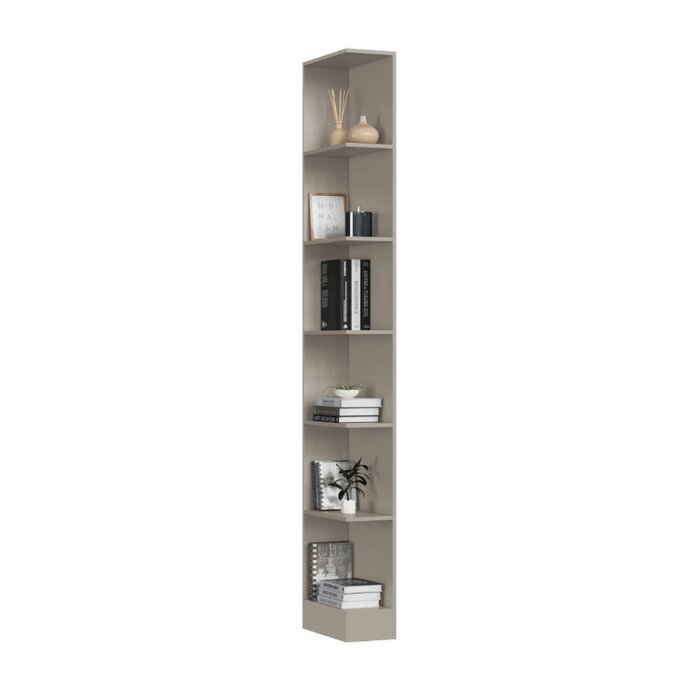 Módulo cantoneira 100% MDF, ideal para acabamentos nas laterais de quartos modulados ou como detalhe funcional no ambiente. Possui prateleiras para organização e decoração, unindo praticidade e design moderno. Pode ser montado do lado direito ou esquerdo, adaptando-se perfeitamente ao seu espaço.