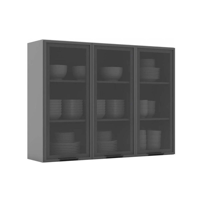 Módulo Cozinha Henn Belize Armário 3 Portas c/Vidro Cinza