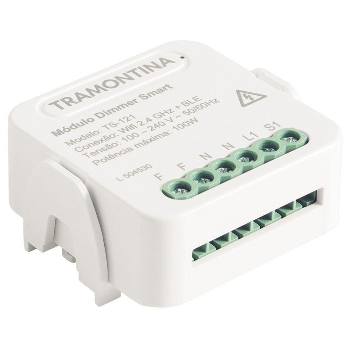Módulo Dimmer Smart TramontinaQuer ter uma iluminação inteligente, econômica e personalizada na sua casa? O módulo dimmer smart Tramontina é a solução ideal para você. Com ele, você pode controlar a intensidade das luzes à distância, utilizando o aplicativo ou comandos de voz através dos assistentes Google e Alexa. Sua tecnologia IoT, permite controlar as luzes de qualquer lugar do mundo que estiver, além de programá-las para ligar e desligar em horários agendados, o que ajuda a economizar energia. Além disso, ele permite que você crie ambientes personalizados para cada momento, como baixar a luminosidade das lâmpadas na hora de assistir um filme ou determinar que a luminosidade seja 10% ao acordar e a aumentar gradativamente, deixando o ambiente mais aconchegante. A instalação é fácil e simples: basta adaptar o seu interruptor convencional ao módulo dimmer smart Tramontina e seguir as instruções do manual que acompanha o produto. É importante lembrar que ele deve ser utilizado com lâmpadas dimerizáveis, sejam elas LED, halógenas ou incandescentes, suportando uma potência máxima de 100 watts e sendo bivolt. Verifique a potência total do circuito de iluminação antes de instalar. Não perca mais tempo e adquira já o módulo dimmer Smart Tramontina para ter uma iluminação inteligente, econômica e personalizada na sua casa! Deve ser utilizado com lâmpadas dimerizáveis, sejam elas LED, halógenas ou incandescentes.Cuidados com o produto A instalação e segurança: É importante que o produto seja instalado por profissional habilitado. Antes de instalar, desligue a energia elétrica.Garantia2 anos (90 dias de garantia legal acrescido de 1 ano e 9 meses de garantia contratual).