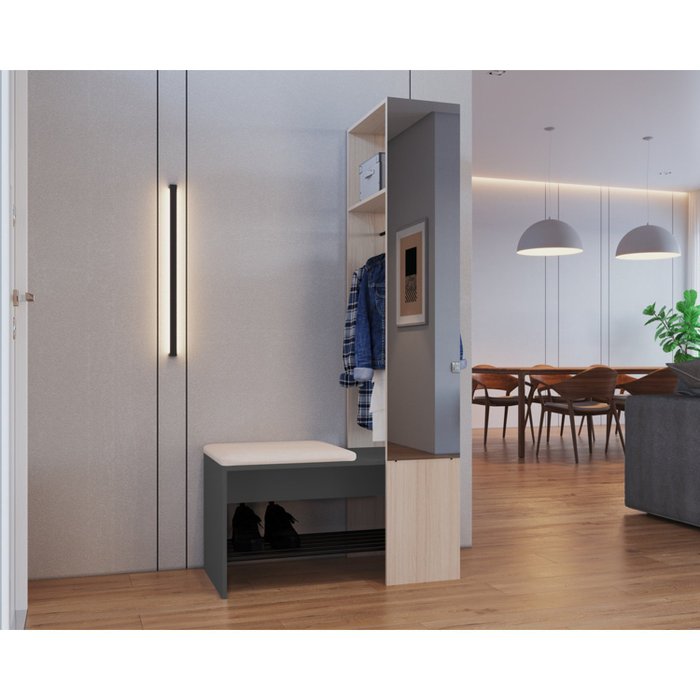 Módulo para Closet com Espelho Cabideiro e Banco Flow Grafite/Nature