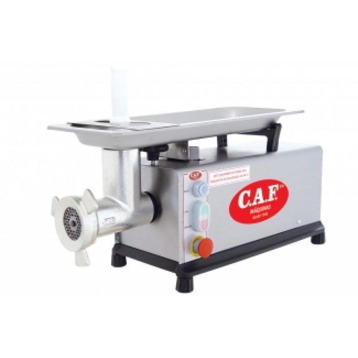CaracterísticasO Picador de Carne CAF 10 Inox é um equipamento indicado para lanchonetes, hotéis, restaurantes e outros. A capa e a bandeja são produzidas em aço inox. O redutor possui 4 engrenagens helicoidais extremamente resistentes e silenciosas que trabalham imersas em banho de óleo proporcionando grande durabilidade. O bocal é produzido em ferro fundido estanhado. Projetado com 3 ranhuras que lhe proporciona ótimo desempenho na moagem de carne. O caracol e o volante são produzidos em ferro fundido nodular estanhado. Os discos são fabricados em aço com tratamento térmico para maior durabilidade. Uma característica importante são as cruzetas que são feitas em aço CRV microfundido. Possuem tratamento térmico e design projetado para que se mantenha sempre afiada.Capa Construída em aço inox.BandejaConstruída em aço inox com protetor de segurança.RedutorCom 4 engrenagens helicoidais, extremamente resistentes e silenciosas, trabalhando imersas em banho de óleo, proporcionando grande durabilidade.BocalFabricado em ferro fundido estanhado. Projetado com 3 ranhuras que lhe proporciona ótimo desempenho na moagem da carne.DiscosEm aço com tratamento térmico para maior durabilidade.CaracolFabricado em ferro fundido nodular estanhado.Volante Fabricado em ferro fundido nodular estanhado.CruzetasEm aço CRV microfundido. Possuem tratamento térmico e design projetado para que se mantenha sempre afiada.