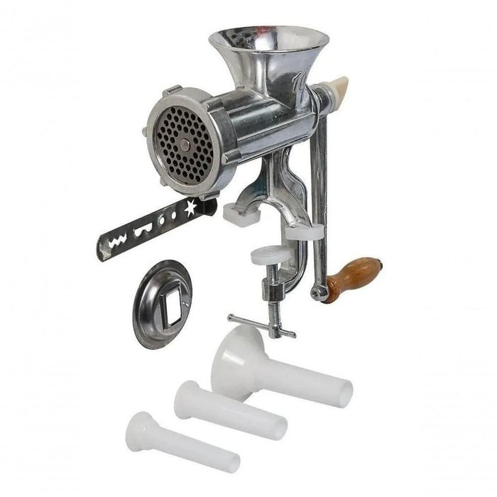 Moedor De Carne N 10 + Jogo De Funil Para Fazer Linguiça - A máquina para moer carnes é desenvolvida em alumínio e possui sistema de fixação por morsa, que permite travar a máquina em qualquer superfície, facilitando assim o seu trabalho