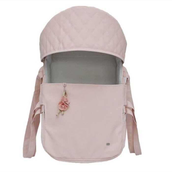 Moisés confeccionado em vinil emborrachado, estruturado nas laterais, alças reforçadas, placa de sustentação no fundo, colchão espuma, capa do colchão em tecido com elástico podendo ser retirada para lavar, capota com botões de pressão podendo ser retirada.