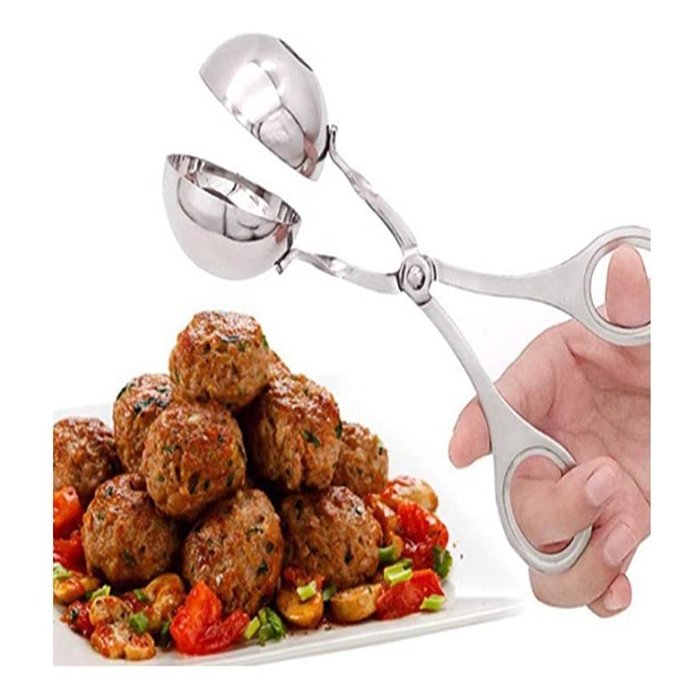 Molde para almondegas e bolinhos no formato tesoura. Faça bolinhos de tamanhos e formatos uniformes. Mais praticidade, higiene e agilidade no preparo dos seu bolinhos. Fácil de usar e limpar. Em aço inoxidável, qualidade e resistência. Faz almondegas e bolinhos de 4,5 cm de diâmetro. Comprimento: 17 cm, largura 10 cm, diâmetro da forma 4,5 cm.