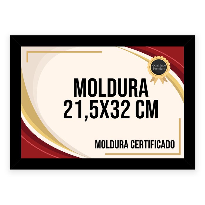 Moldura 21,5x32 cm para Certificado Moldura Lisa com Vidro - Preto Preto