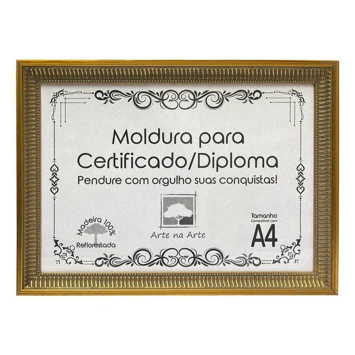 Moldura A4 Quadro Certificado Diploma de Luxo e Tela Acetato Titulos Moldura Dourada