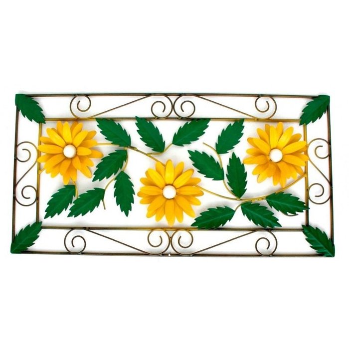 Moldura de Ferro Parede Colonial Rustica com Flores Artificiais de Ferro - Amarelo