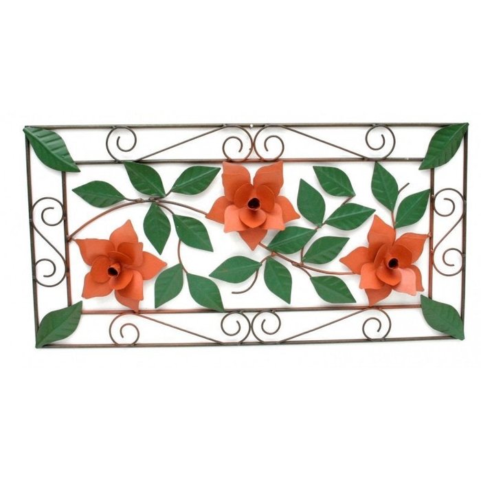 Moldura Com Flores Artesanal confeccionada em ferro e lata.