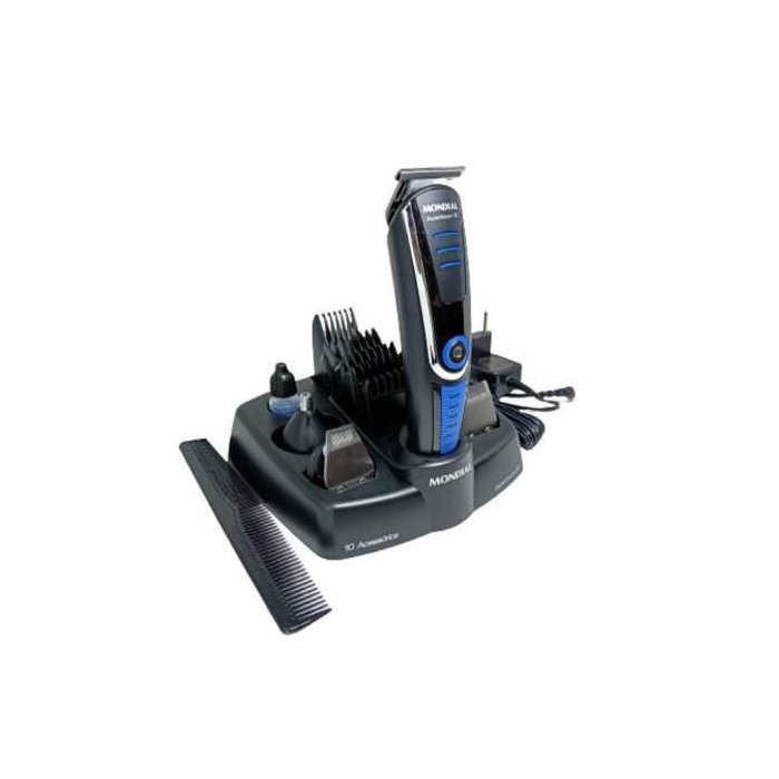 Mondial máquina barbear elétrica kit completo 10 pçs bivolt
