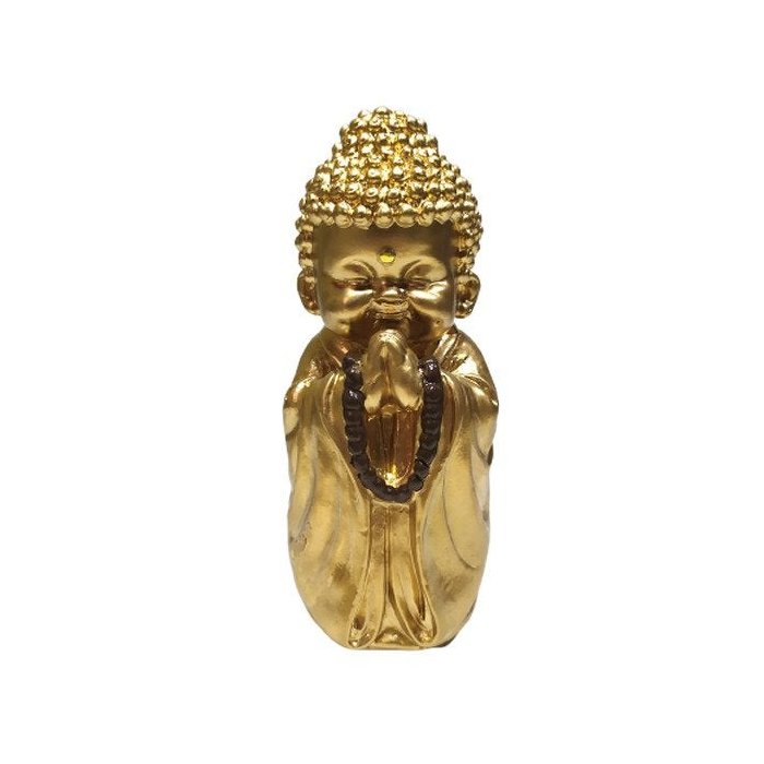 Uma peça decorativa que se destaca pelos finos e delicados traços do monge com a clássica iconografia de Buda incorporando à imagem o brilho e a energia da cor Dourada, elementos perfeitos para atrair prosperidade e fortuna.