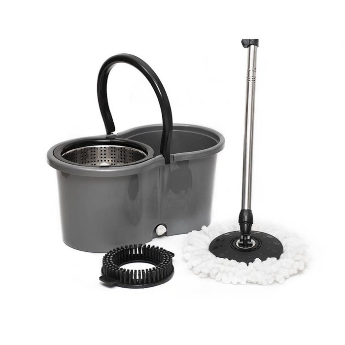 Mop Balde em Casa Tem Cesto em Inox 9l com 2 Refis Cinza escuro